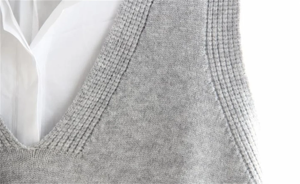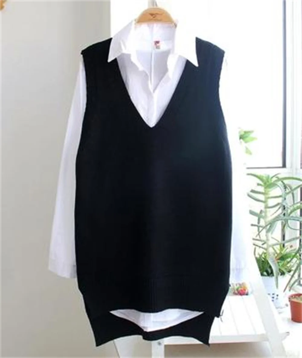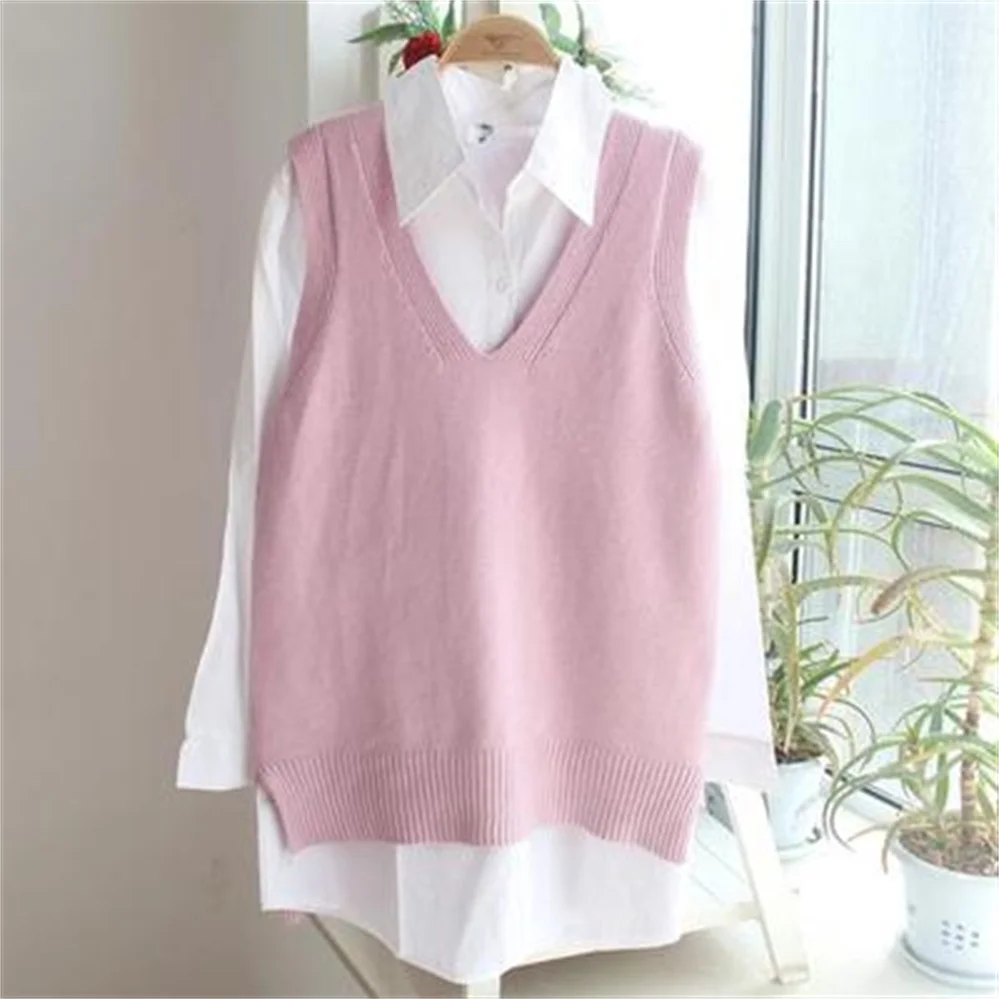 Korean Women Knitted Sweater Sleeveless College Style Women Loose Vest Ladies V-Neck Pullover Tops Female Waistcoat Pull Femme